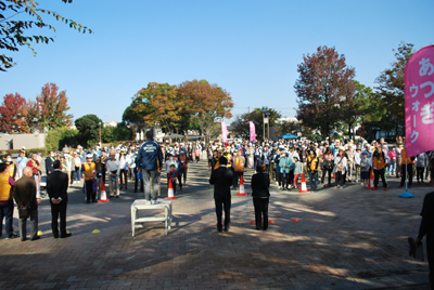 厚木中央公園を発着点に、市の南部をコースとし、玉川と相模川沿いの堤防道路や相模大堰管理橋などを歩くコースに335人が参加しました。